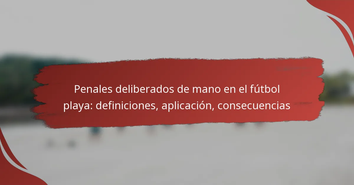 En el fútbol playa, una mano deliberada ocurre cuando un jugador utiliza intencionadamente su mano o brazo para manejar el balón, constituyendo una falta que puede llevar a sanciones. Los árbitros son responsables de hacer cumplir estas reglas, asegurando que cualquier mano intencionada sea abordada para mantener la integridad del juego. Las consecuencias de tales sanciones pueden influir en gran medida en el resultado del partido y en la dinámica general.