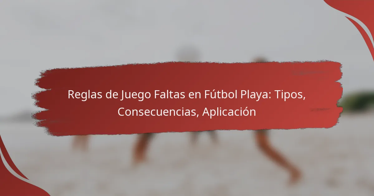Las faltas en el fútbol playa incluyen diversas infracciones que pueden interrumpir el flujo del juego y llevar a sanciones. Comprender estas reglas es esencial para los jugadores y oficiales para asegurar un juego limpio y mantener el espíritu deportivo en la arena, ya que las violaciones pueden resultar en tiros libres, tarjetas amarillas y rojas, e incluso suspensiones del juego. Los árbitros juegan un papel crítico en la aplicación de estas reglas, asegurando la integridad y seguridad del partido.